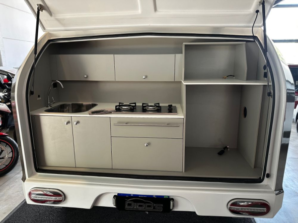 SUPORTE EXTERNO PARA 2 BICICLETAS, BAGAGEIRO COM ACESSO LATERAL, NICHOS E COMPARTIMENTOS INTERNOS PARA ARMAZANAGEM.